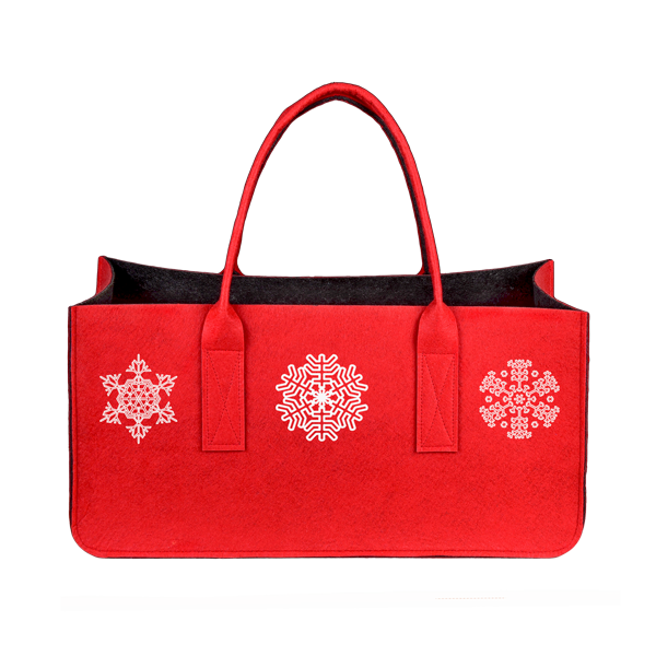 W opcji rączki ze skóry, 2 kolorowy filc, świąteczne nadruki.
